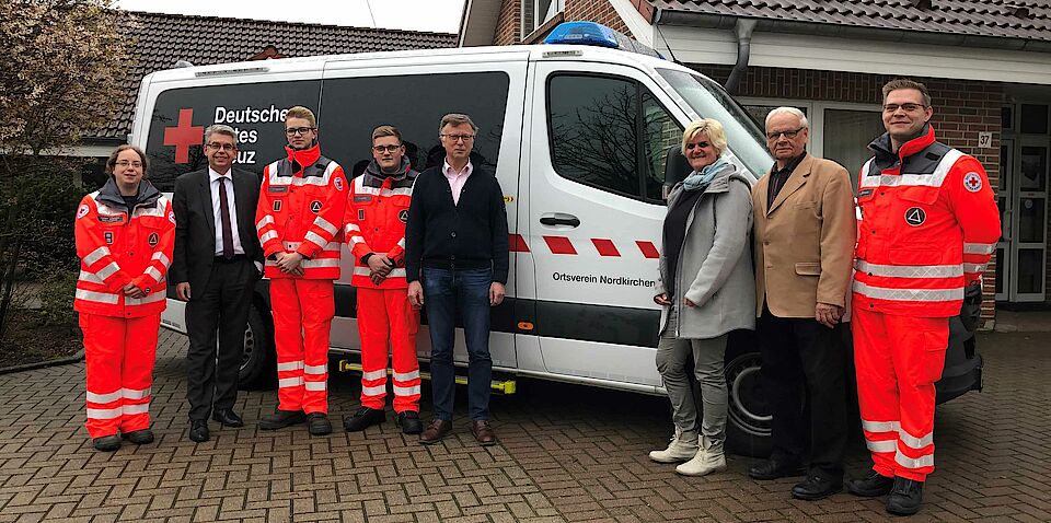 Der Vorstand und Helferinnen und Helfer der Rotkreuzgemeinschaft weihten das Fahrzeug am Donnerstagabend feierlich ein.