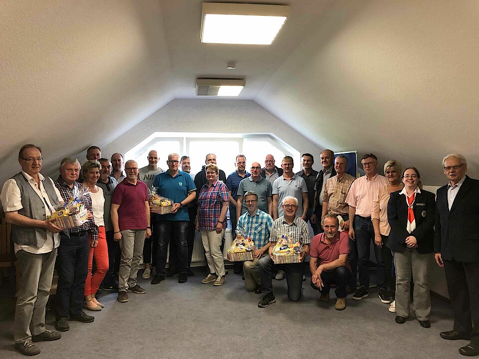 Der DRK Ortsverein Nordkirchen und der DRK Blutspendedienst Münster ehrten ihre langjährigen Blutspender für ihre hohe Spendebereitschaft. Nach einer kurzen Präsentation über den Aufbau und die Strukturen des DRK Ortsvereins durch Rotkreuzleiterin Miriam Wißmann (2.v.r.) überreichte sie gemeinsam mit dem Vorsitzenden Karl Schnittker (4.v.r), der stellv. Vorsitzenden Barbara Bergmann (3.v.r) und dem Beisitzer Willi Nägeler (r.) aus dem Vorstand des Ortsvereins, Ehrennadeln, Urkunden und Präsentkörbe für 25-, 50-, 60-, 70-, 75-, 80-, 90-, 100- ,110- ,120-,140- und 160- malige Spenden. Im Anschluss waren die Blutspender zu einem Abendessen in Bufettform im DRK Haus eingeladen.