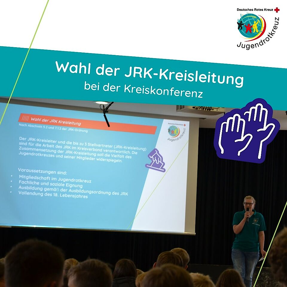 Vor der Siegesfeier gab es dann noch die Kreiskonferenz, bei der auf vergangene Aktionen zurückgeblickt wurde und auch die JRK-Kreisleitung gewählt wurde. Neben Peter Koch aus dem Ortsverein Herbern wurde auch Christiane Boländer aus unserem Ortsverein erneut als stellvertretende JRK-Kreisleiter:in gewählt. Herzlichen Glückwunsch!
