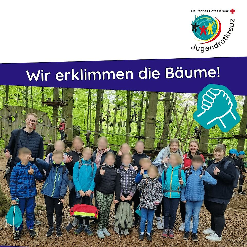Samstag hat das Jugendrotkreuz die Bäume im Kletterwald Haltern erklungen. Nach der Sicherheitseinweisung ging es für die Kinder und Jugendlichen hoch hinaus. Sie konnten über verschiedene Wege und Hindernisse die Baumkronen erklimmen. Unterstützt wurden sie durch die Gruppenleitungen.