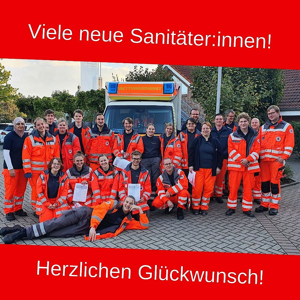 Auch Finja Gährken aus unserem Ortsverein hat die Prüfung mit Bravour bestanden und ist nun für Nordkirchen z.B. bei Sanitätsdiensten im Einsatz.
