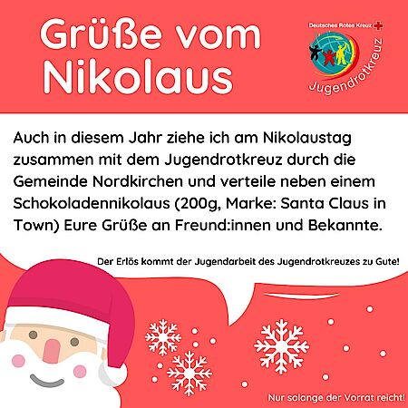 Verschicken Sie am Nikolaustag einen Schokoladennikolaus (200g, Marke: Santa Claus in Town) mit einer lieben Grußkarte an Ihre Freund:innen und Bekannte aus der Gemeinde Nordkirchen.